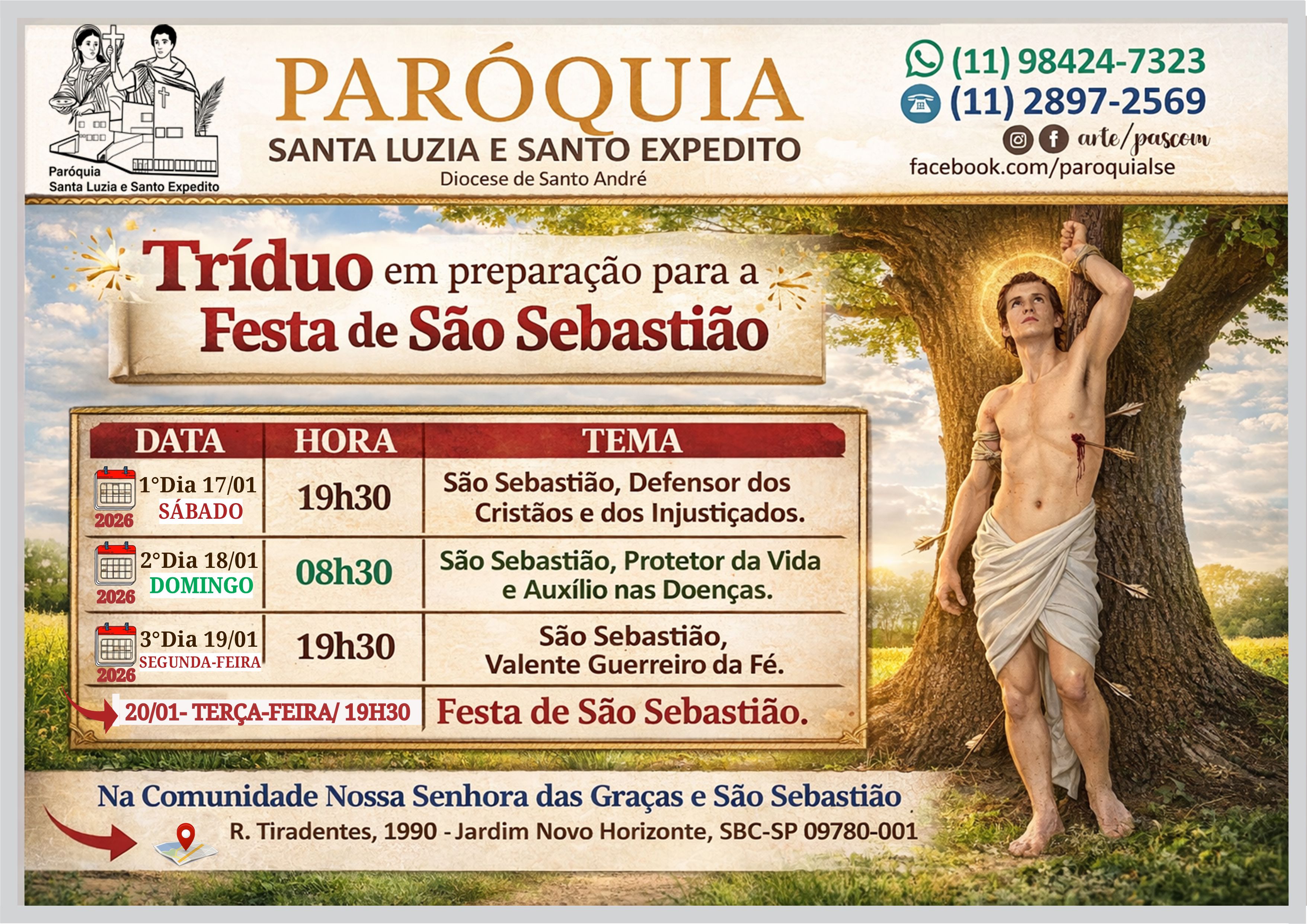 Com alegria e fé anunciamos que iremos iniciar o Tríduo em preparação para a Festa de São Sebastião.